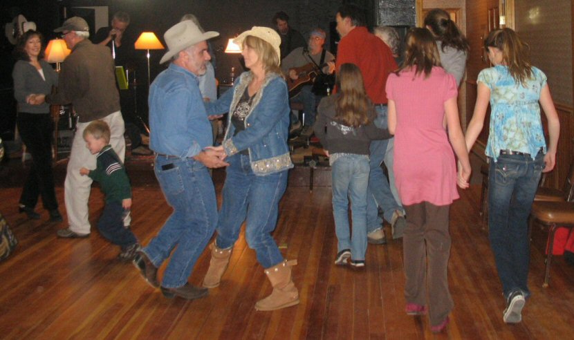 By the middle of the evening (above), the dance floor was crowded with lively town residents and guests of all ages. Most enjoyed a “freestyle” approach; Loren and Sue, center, were the couple to watch!