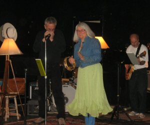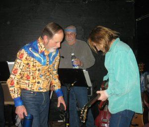 Walt sat in with the band a while, playing a custom guitar he built himself, which Gus is admiring as Steve looks on in the photo below.