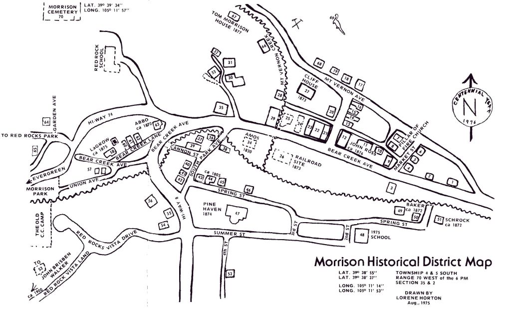 1 “Morrison Matters: A Word or Two About This Enterprising Foot-Hill Hamlet. Her Business, Agricultural and Grazing Facilities Commented On.” The Rocky Mountain News (Daily), Volume 25, April 27, 1884.