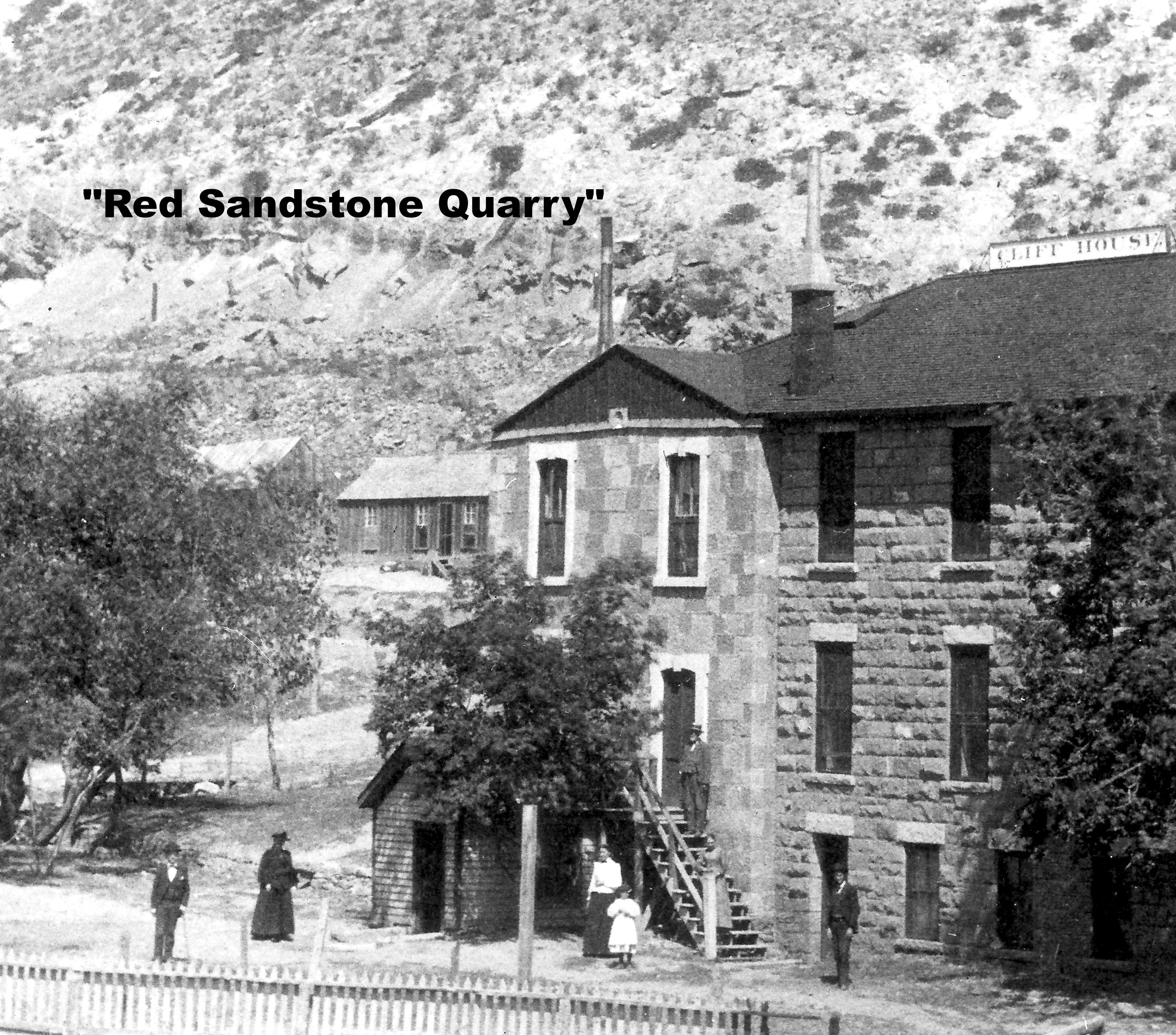 The visible scar along the hogback was named a historic site, but for the wrong reason. This site originally documented for the National Historic Register is actually one of George Morrison’s early sandstone quarries and is labeled as such on one of Arthur Lakes’ drawings. The sandstone quarry overlooks the Cliff House, built of this red Morrison sandstone in 1873.