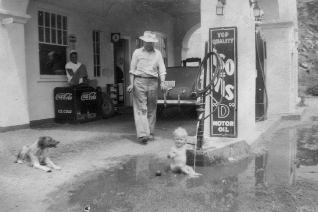 This was my grandfather’s gas station when I was born his name was Loyd heldenbrand his wife’s name was Iva my dad and us lived in the house to the west which is now Willie’s wings I use to help my dad change the light bulbs in the cross my grand dad was one of the people who helped build try town and was involved in alot with the city of Morrison his picture use to be in the old Morrison museum I have a few old pictures but my dad has a bunch